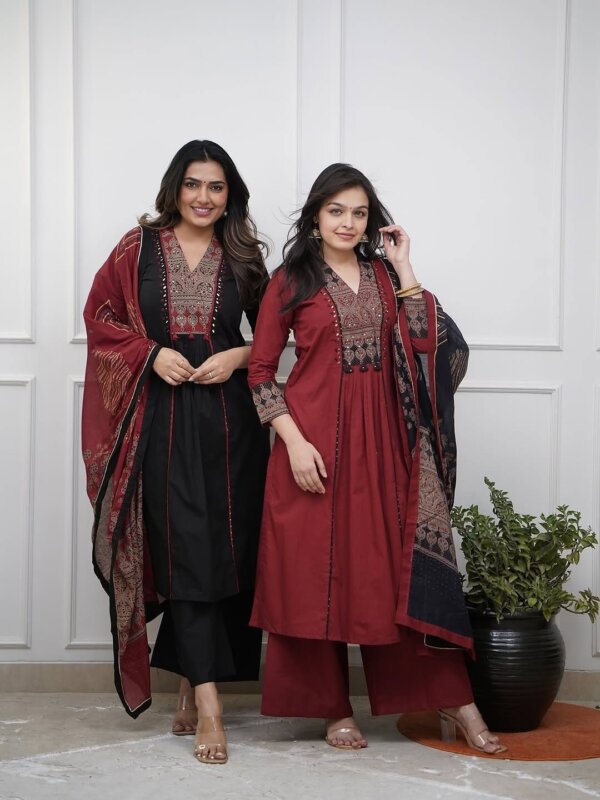 The set includes a stylish kurti, comfortable pant, and a flowy dupatta β giving you a complete festive-ready look.