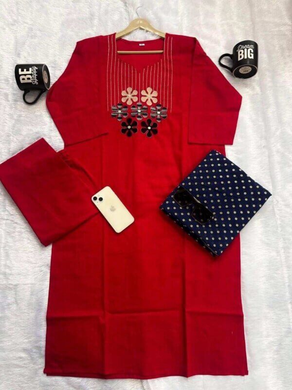 🌸 An elegant kurti palazzo with dupatta set that blends traditional embroidery with modern comfort —