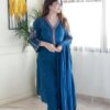 Exclusive Cotton Embroidered Kurta Pant Set – Elegant light cotton kurta with embroidery, paired with cigarette pants and dupatta. Sizes M–3XL.