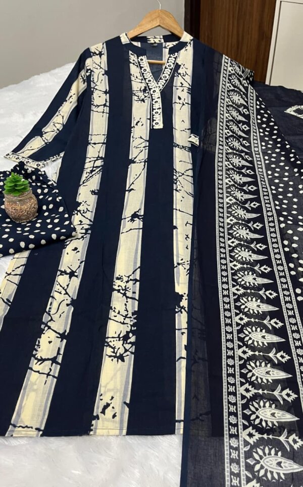We are here to spread some magic in your wardrobe with this pure fine heavy cotton suit set, designed for elegance and comfort. Crafted with full embroidery work, this ethnic outfit includes a kurti, pant, and cotton 100Γ—100 dupatta – making it perfect for festive occasions, weddings, and everyday ethnic fashion.