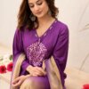 Paired with comfortable cotton pants and a lightweight malmal cotton dupatta enhanced with matching prints, this set radiates airy sophistication and charm.